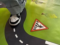 Durante la lezione, è stata proposta ai ragazzi una prova pratica, che ha suscitato grande interesse e partecipazione: grazie a un tappeto raffigurante un percorso e all’uso di occhiali distorsivi, gli studenti hanno potuto sperimentare in modo diretto la percezione alterata della strada in caso di assunzione di alcol.