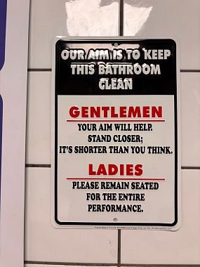 Il bar della stazione di servizio era affollato e così mi misi subito in fila davanti all'unico gabinetto esistente, democraticamente da condividere fra femmine e maschi. Ed è proprio li dentro che, dietro al water closet, ad altezza occhi, erano affissi i due cartelli in questione.