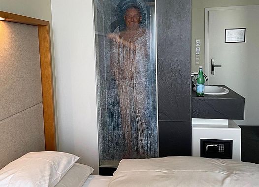 Mi spiego. La prima volta che mio marito ed io abbiamo dormito in una camera con la doccia a vista è stato tre anni fa a Graz, in Austria, in una struttura a metà strada fra un ostello della gioventù e una pensione per famiglie numerose. Camera doppia confortevole e pulita, arredi nuovi e... oplà, nel mezzo, un box pieno di manopole con tre pareti su quattro in vetro.