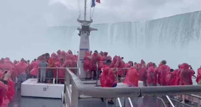 Sia sulla sponda americana che su quella canadese del Niagara ci sono terrazzamenti e percorsi pedonali che si affacciano su quell'immensa muraglia d'acqua e noi, quel giorno, li percorrenmo praticamente tutti, camminando fino a tarda sera. Il momento più emozionante però l'abbiamo vissuto a bordo di uno dei battelli che portano i turisti fino quasi al centro del ferro di cavallo, là dove l'acqua precipita nel vuoto e si schianta sulle rocce del letto del fiume, sprigionando un'incontenibile energia.