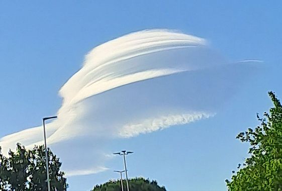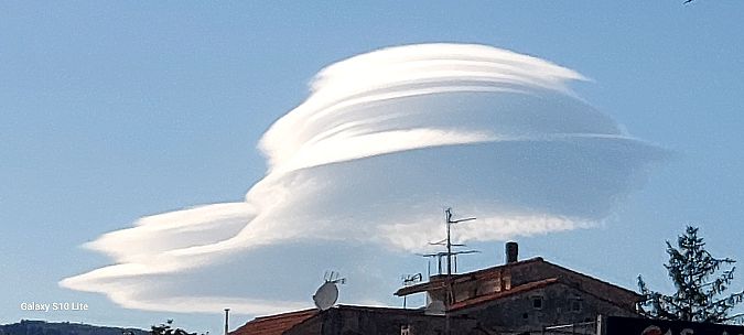 Il 12 Giugno ha calamitato l'attenzione di migliaia di toscani la strana nuvola che vedete nella foto qui sotto, fotografatissima dalla piana di Firenze, Prato e Pistoia fino all'Appennino modenese. A molti ha ricordato un'astronave e, in effetti, quei dischi affastellati uno sull'altro rievocavano famose navi spaziali della filmografia mondiale, da E.T. in poi. I metereologi del Lamma si sono affrettati a spiegare che si trattava di un altocumulo lenticolare, quindi di una nuvola dalla forma inusuale ma ben classificata. E soprattutto formata, come tutte le nuvole, da vapore acqueo di origine assolutamente terrestre.