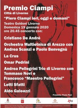 Dicono gli organizzatori: “Il concerto del 19 gennaio sarà anche l’occasione per rievocare un momento davvero speciale nella storia del Premio Ciampi: il concerto di Fabrizio de André nel 1997 (nel corso del quale, fra le altre cose, Faber parlò di Piero in modo straordinariamente efficace). Quella sera, sul palco con il padre c’era anche Cristiano, che torna a Livorno in un momento particolarmente felice della sua carriera”.