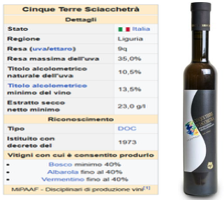 Colore: giallo dorato con riflessi ambrati, di bella vivacità. Profumo: intenso, caratteristico profumo di miele. Gusto: dolce, armonico, di buona struttura e di buon corpo, sensazione ampia e lunga (coda di Pavone) con retrogusto mandorlato. Non facilmente reperibile se non nei dintorni di La Spezia e Comuni. I prezzi: prendete nota della resa per ettaro e capirete. Per una volta, insieme ad amici, si può fare; gli argomenti vengono uno dietro l’altro, dopo i sorsi di vino.