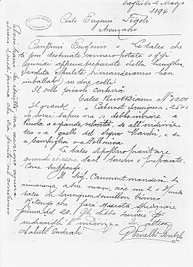 Nel 1894 il nuovo proprietario della fattoria di Vignale, il conte Eugenio Figoli ricevette dal proprietario del Castello di Tagliolo in Piemonte un certo Pinelli G delle talee di Pinot Bianco 1200, e di Cabernet Sauvignon 2500. Possiamo dire che è una testimonianza dei primi vitigni di questo tipo in Val di Cornia e non solo, fatta salva una eventuale notizia che possa testimoniare altri vitini prima del 1894.