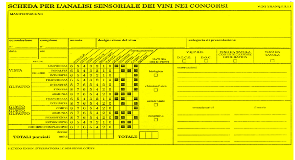 Qui sopra ci sono: la scheda componenti chimici del vino, e una scheda AIE (ass/ne It. Enologi per stabilire le qualità dei vini ad uso esclusivo personale. E’ facile da usare, fatta salva la verità del degustatore più “bravo”.