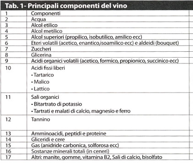Per esempio: mi capitò di leggere su un settimanale, Panorama anni ’90, la descrizione di un vino bianco con questi termini, profumo: odore di sudore di cavallo in corsa. E giusto ricordare che le qualità dei vini sono determinate dalle caratteristiche delle uve, del terreno, dei modi di vinificazione; Il tutto e riassunto dalle temperature fin dall’inizio della filiera produttiva. Nel presente prospetto estrapolato da internet vediamo tutti i componenti chimici che al momento della degustazione dei vini sono determinanti per stabilire i colori, i profumi e i gusti. Tutto e relativo alle capacità della conoscenza enoica e agli apparati visivi e sensoriali del naso e della bocca personali. Tutto ha un limite. Ecco che subentra la mente umana a dimostrare che non ha limiti per crescere culturalmente anche in modi artificiosi con logiche ben precise.