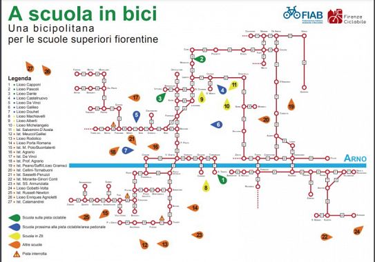 "Fiab-Firenze Ciclabile ha illustrato il progetto della bicipolitana che collega le piste ciclabili esistenti individuando le direttrici portanti che uniscono i maggiori centri d’interesse e realizzano linee di trasferimento veloce per facilitare lo spostamento dei ciclisti. Sono state illustrate le otto linee ciclabili che prevedono collegamenti in continuità anche con i comuni confinanti e permettono lo spostamento da un punto all’altro della città per raggiungere le scuole cittadine. La conoscenza del progetto ha portato a far riflettere gli studenti, che si sono resi conto come sarebbe possibile utilizzare la bici in sicurezza per andare a scuola".