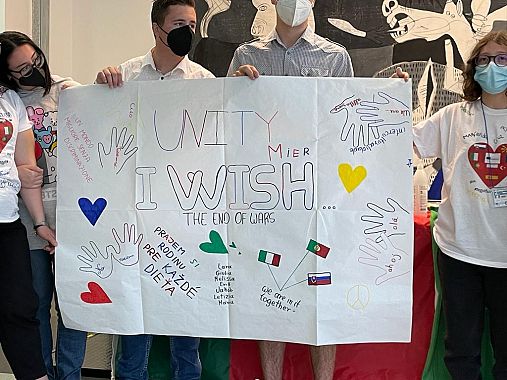 Gli studenti insieme hanno inoltre lanciato i loro desideri e le loro speranze per la costruzione del futuro. “I wish...” (Io desidero) è stato il lavoro svolto dai ragazzi. Naturalmente la costruzione comune di un Europa di pace è stato il desiderio maggiormente sviluppato dagli studenti.