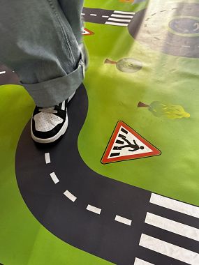 Durante la lezione, è stata proposta ai ragazzi una prova pratica, che ha suscitato grande interesse e partecipazione: grazie a un tappeto raffigurante un percorso e all’uso di occhiali distorsivi, gli studenti hanno potuto sperimentare in modo diretto la percezione alterata della strada in caso di assunzione di alcol.