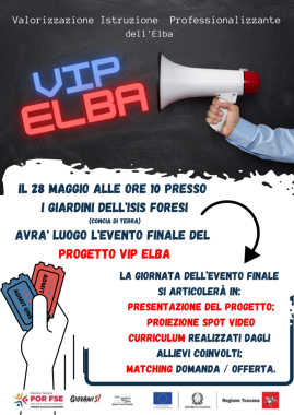 PORTOFERRAIO — Venerdì 28 Maggio, nei Giardini dell'Isis Foresi a Concia di Terra, a Portoferraio, si svolgerà l'evento finale di V.I.P. Elba, il progetto per la valorizzazione dell'istruzione professionalizzante dell'isola d'Elba.